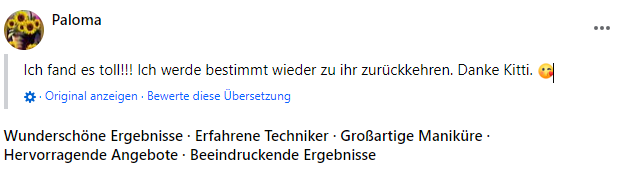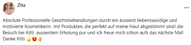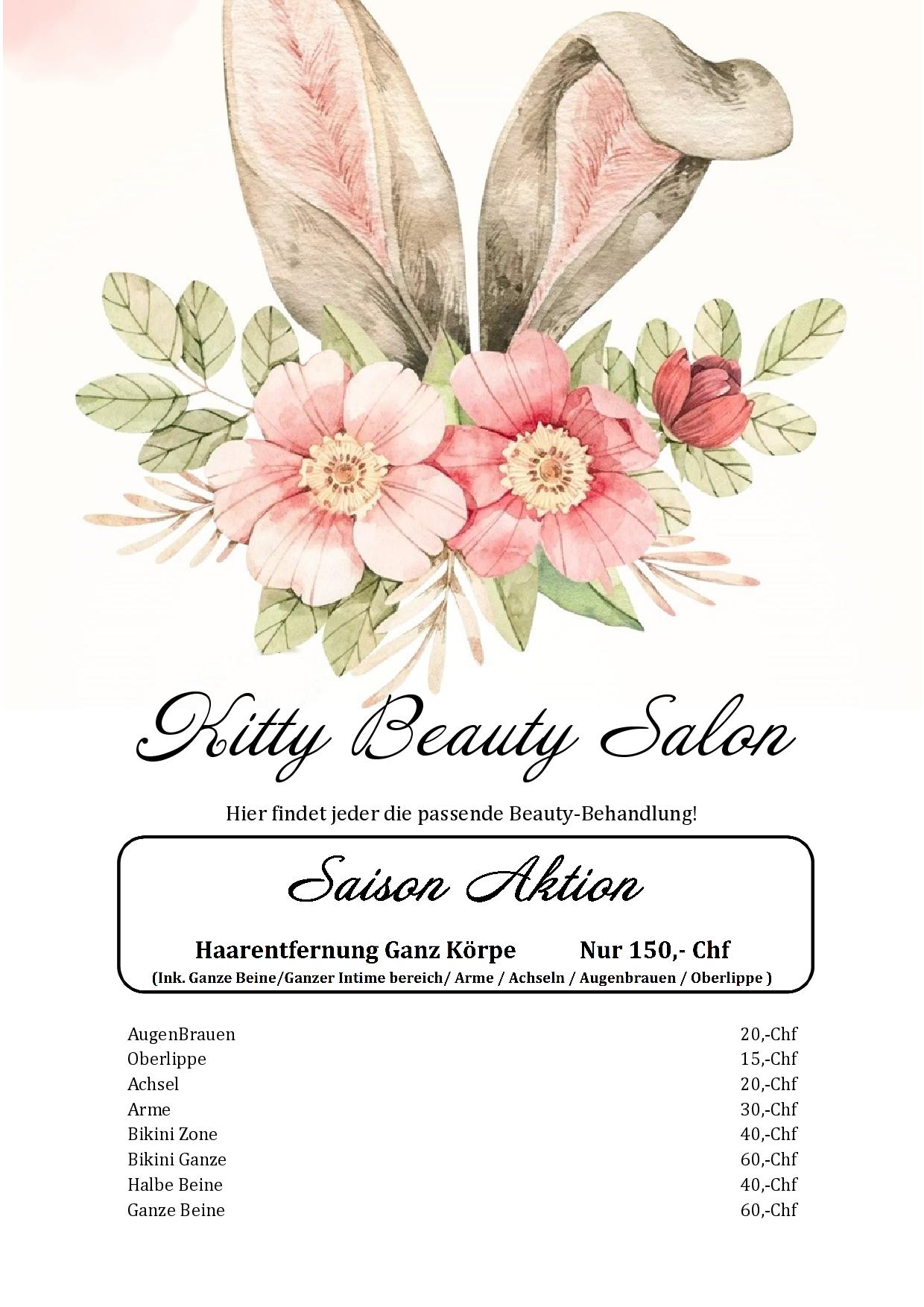 Nägeldesignerin seit über 15 Jahren. Seit 01. December. 2023 biete ich verschiedene hochwertige, kosmetische Behandlung an. Ich weiss, dass es nicht immer einfach ist, die Zeit oder das Geld zu finden, um sich zu verwöhnen - deshalb biete ich schnelle und qualitativ hochwertige Behandlungen an, die nicht viel kosten. Mein Ziel ist es, dass Sie den Kitty Beauty Salon mit einem fabelhaften Gefühl verlassen. Lehnen Sie sich also zurück, entspannen Sie sich und lassen Sie sich von mir verwöhnen. Vereinbaren Sie noch heute online (Termin Buchen) oder telefonisch +41 79 312 46 18 einen Termin bei mir. Die Angebote finden Sie nachstehend. Ich freue mich auf Sie.